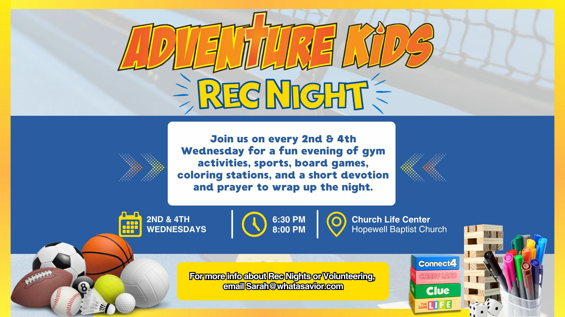 This will be a fun and safe place for kids to come and fellowship together through games, activities, sports and more! This will be a fun and safe place for kids to come and fellowship together through games, activities, sports and more!